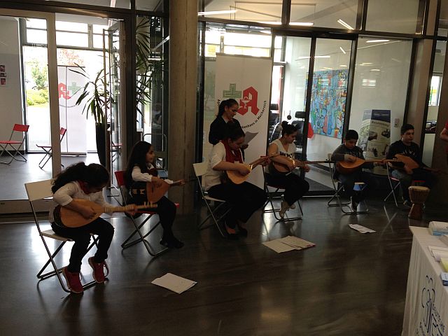 Für das leibliche Wohl der Schüler, Besucher, Aussteller und Gruppen sorgte wieder das AWO- OV Mechernich Gesundheitscafe`! ![]() (Foto: AWO- Gesundheitscafe` bei der Arbeit) Der Gesundheitstag wurde mit einem Konzert beendet. ![]() ![]() (Fotos zeigen Musikgruppe beim Konzert ) Hier weitere Impressionen vom Gesundheitstag 2014: